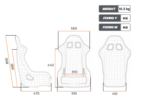 Sedile con telaio in acciaio tubolare. Ottimo rapporto qualità/prezzo, ampie fessure per le cinture di sicurezza per adattarsi a diverse altezze. Supporti laterali di media altezza per il supporto laterale delle gambe e una maggiore protezione. Poggiagambe removibili per consentire il massimo comfort di seduta individuale. Rivestimento interamente in velluto. Compatibile con HANS®.